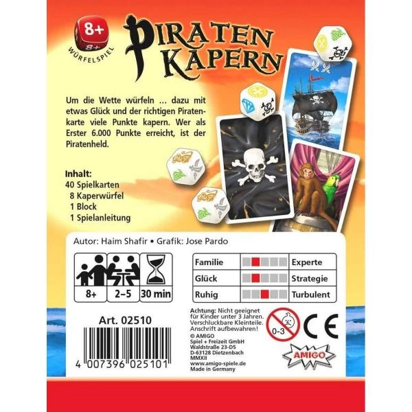 - Wer am Zug ist, deckt die oberste Piratenkarte auf, die ihm Bonuspunkte, aber auch Minuspunkte bringt.