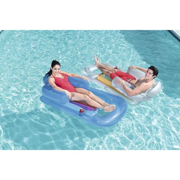 Jetzt noch mehr Badespaß für Groß und Klein! Die “Designer“ Luftmatratze lädt zum Planschen im kühlen Nass ein. Die in zwei Farben erhältliche Luftmatratze bietet nicht nur aufblasbare Rücken- und Armlehnen, sondern auch einen integrierten Getränkehalter für Ihren eisgekühlten Drink und eine Auslassung, in die Sie Ihre Füße eintauchen können. Entspannen im Wasser hat nie mehr Spaß gemacht als mit der Bestway “Designer“ Luftmatratze.