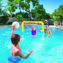 Mit dem Wasserball-Set von Bestway® lernen die Kinder zu spielen wie die Profis! Während sie versuchen, den Ball ins Netz des Gegners zu befördern, haben sie einen riesen Spaß und viel Bewegung. Das speziell fürs Wasser ausgelegte Spiel ist einfach aufzubauen und bietet stundenlange Beschäftigung und Spielfreude.