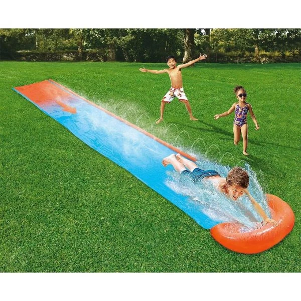 Diese Wasserrutsche bietet den klassischen Sommerspaß für den Garten! Sie ist super einfach aufzubauen – nur mit dem Gartenschlauch verbinden und loslegen. Kinder sind verrückt nach dieser ultimativen Wasserrutsche in ihrem Garten und Eltern wissen zu schätzen, wie einfach sie aufzubauen ist! Diese Rutsche sorgt für besonders schlidderndes, spritziges, schnelles Vergnügen!