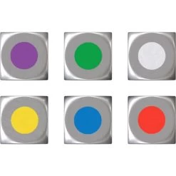 Inhalt: 4 Rennwagen, 6 Farbwürfel, 1 doppelseitiger Spielplan, 33 Papp-Plättchen (24 Beschleunigungs-Plättchen in 6 Farben, 4 Neuwürfler-Plättchen, 4 Pokal-Plättchen, 1 Startspieler-Plättchen).