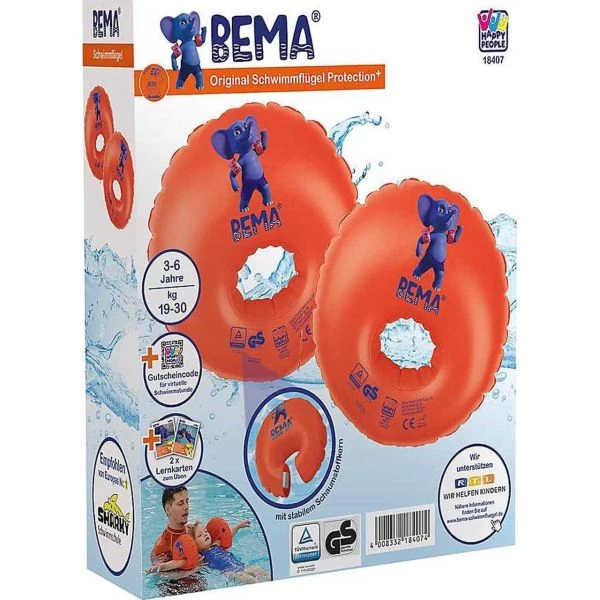 Die abgerundeten Ecken sorgen für einen hohen Tragekomfort und die flache Ausführung der BEMA-Leiste verhindert das Abrutschen der Schwimmflügel. So gewinnt das Kind Vertrauen und bekommt ein Gefühl für die sichere Bewegung im Wasser. Schwimmenlernen leicht gemacht! Details: – BEMA Duo Protect Schwimmflügel – mit Schaumstoffkern und zuverlässigem Sicherheitsventil – liegen angenehm am Arm – inklusive Lernkarten und virtuellem Schwimmkurs.