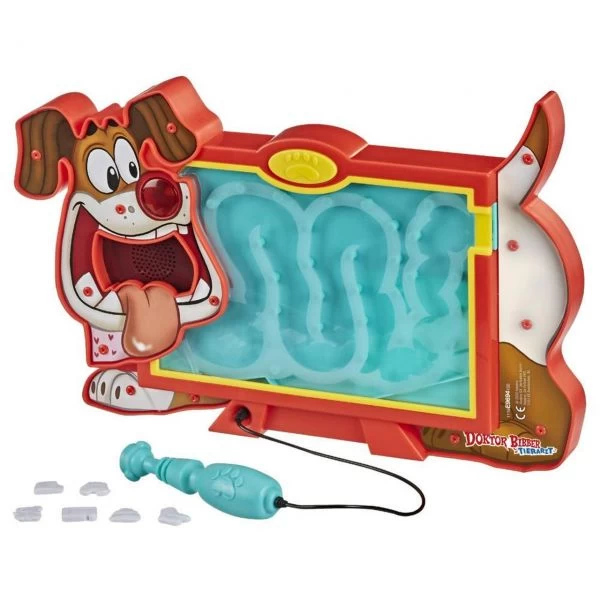 Oh, oh! Ist ein Tierarzt in der Nähe? Pauls Hund Pico hat viele Sachen gefuttert, die er lieber nicht hätte essen sollen: Hausaufgaben, Socken, Häschen-Hausschuhe und noch mehr! Die Kinder schlüpfen in die Rolle eines Tierarztes und versuchen, die verschluckten Dinge herauszuoperieren, damit es Pico wieder besser geht. Der erste Spieler schnappt sich ein Autschi und lässt es in Picos Maul flutschen. Mit dem Hund-o-skop wird es dann vorsichtig durch seinen Bauch geführt – in der Hoffnung, dass es aus seinem Po wieder herauskommt. Doch der Alarm darf nicht ausgelöst werden! Falls der Alarm erklingt, fällt das Autschi herunter. Fällt es aus seinem Bauch, so ist der Spielzug dieses kleinen Tierarztes beendet. Jedes erfolgreich entfernte Autschi bringt einen Punkt und wer die meisten Punkte hat, gewinnt. Während des Spiels werden die Kids mit lustigen Geräuschen unterhalten. Einfach Picos Nase gedrückt halten, um ihn sofort bellen und pupsen zu lassen. Doktor Bibber Tierarzt eignet sich prima als Geburtstags- oder Weihnachtsgeschenk für Kinder ab 6 Jahren.