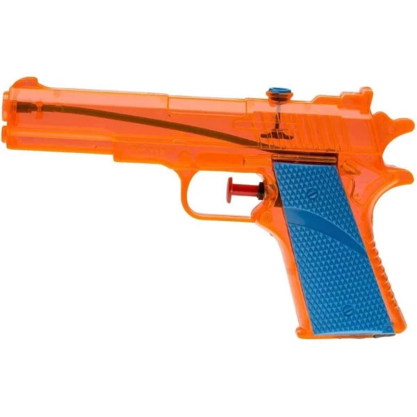Mit diesen zwei coolen Wasserpistolen von Idena in den sommerlichen Farben grün und orange ist jedes Kind perfekt für die nächste Wasserschlacht ausgerüstet. Die beiden Pistolen bestehen aus Kunststoff und sind über einen beweglichen Gummipfropfen an der Oberseite mit Wasser zu befüllen. Aufgrund ihrer kompakten Größe von ca. 18 cm sind sie genau richtig für kleine Kinderhände und passen perfekt in jede Strandtasche oder in den Rucksack. Das Spielen mit der Pistole sorgt für eine willkommene Abkühlung an heißen Sommertagen. Nebenbei wird die Fantasie angeregt sowie Feinmotorik, die Hand-Augen-Koordination und die Zielgenauigkeit der Kinder trainiert.