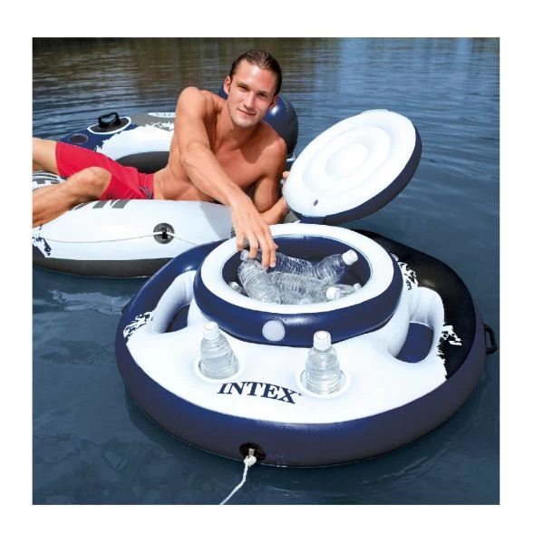 Eisgekühlte Getränke und heißes Sommerwetter ? Kein Problem mit dem Mega Chill Getränkekühler von INTEX. Ø 89 cm, Fassungsvermögen bis zu 24 Getränkedosen, 5 Getränkehalter, 2 massive Haltegriffe. Hohe Stabilität durch 3 Luftkammern und einer Materialstärke von 0,40 mm in Top INTEX Qualität.