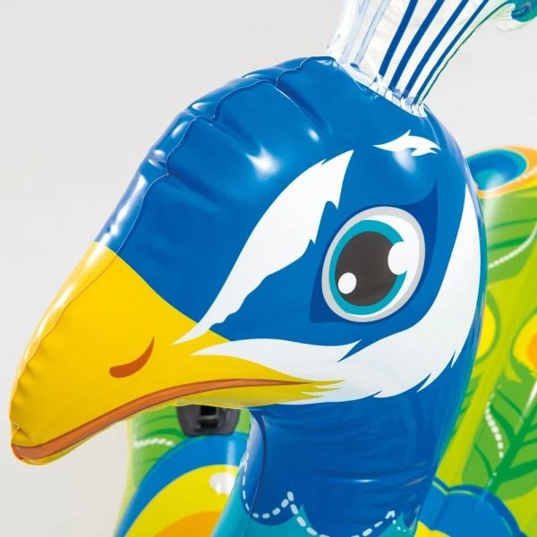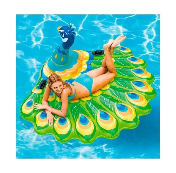 Eiskalte Abkühlung am Pool! Einfach mal treiben lassen. Diese Luftmatratze ist ein echter Hingucker am Strand oder am Pool! INTEX Schwimmtiere / Reittiere im bunten Pfau-Design ist ein tolles Accessoire für Ihren Pool.