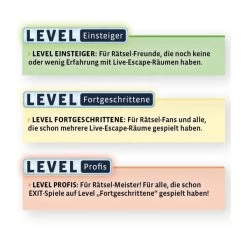 Dabei müssen auch ungewöhnliche Wege beschritten werden. So darf das Material geknickt, beschriftet oder zerrissen werden. Ist das Geheimnis einmal gelüftet, kann das Event-Spiel kein zweites Mal gespielt werden. Das macht den Spieleabend zu einem besonderen Highlight. Live-Escape-Feeling im Einsteiger-Level.