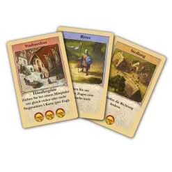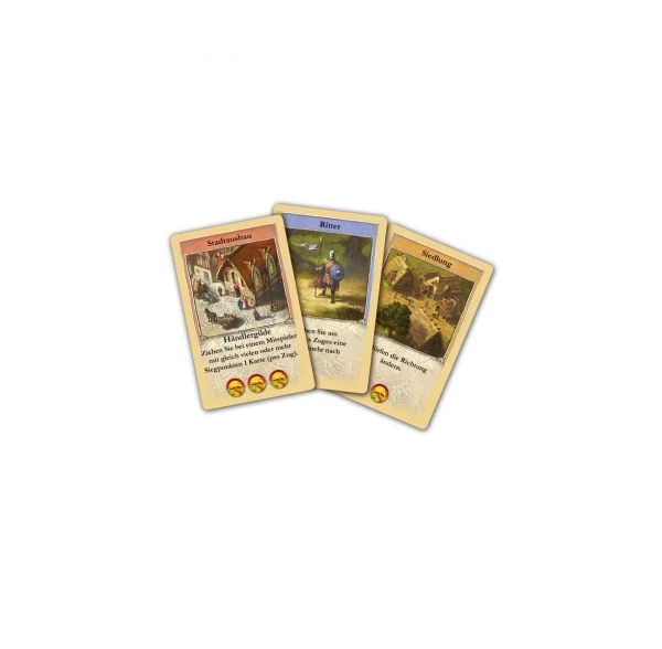 Wie im beliebten Brettspiel geht es in diesem flotten Kartenspiel darum seine Rohstoffe bestmöglich einzusetzen, um Siegpunkte zu erzielen. Straßen werden gebaut und Ritter aufgestellt. Siedlungen entstehen und werden zu Städten erweitert. Rohstoffe werden getauscht und in den Städten wertvolle Gebäude errichtet. Doch Vorsicht: Straßen und Ritter können an Mitspieler verloren gehen. Auch mit den Siegpunkten geht es rauf und runter und es bedarf schon geschickter Taktik, um als Sieger das Spiel zu beenden.