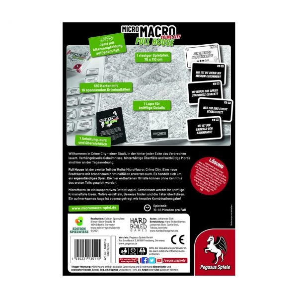 Das Spiel nimmt mit seinen 16 Fällen immer weiter an Fahrt auf und wird komplexer, raffinierter und natürlich auch noch ein bisschen krimineller. Die einzelnen Fälle sind nun mit Symbolen gekennzeichnet, damit es Eltern möglich ist, zu entscheiden, welche Fälle auch die jüngsten Ermittler in MicroMacro recherchieren und aufdecken dürfen.