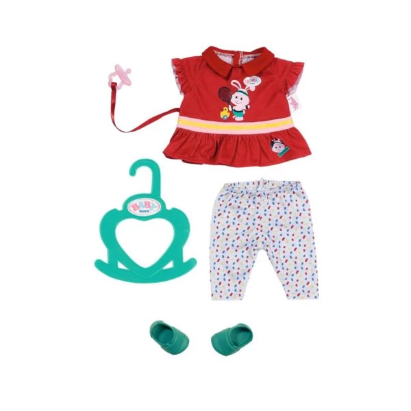 BABY born Little Sport Outfit rot 36cm aus Shirt, Hose und Schuhen. Inkl. Schnuller und Kleiderbügel
